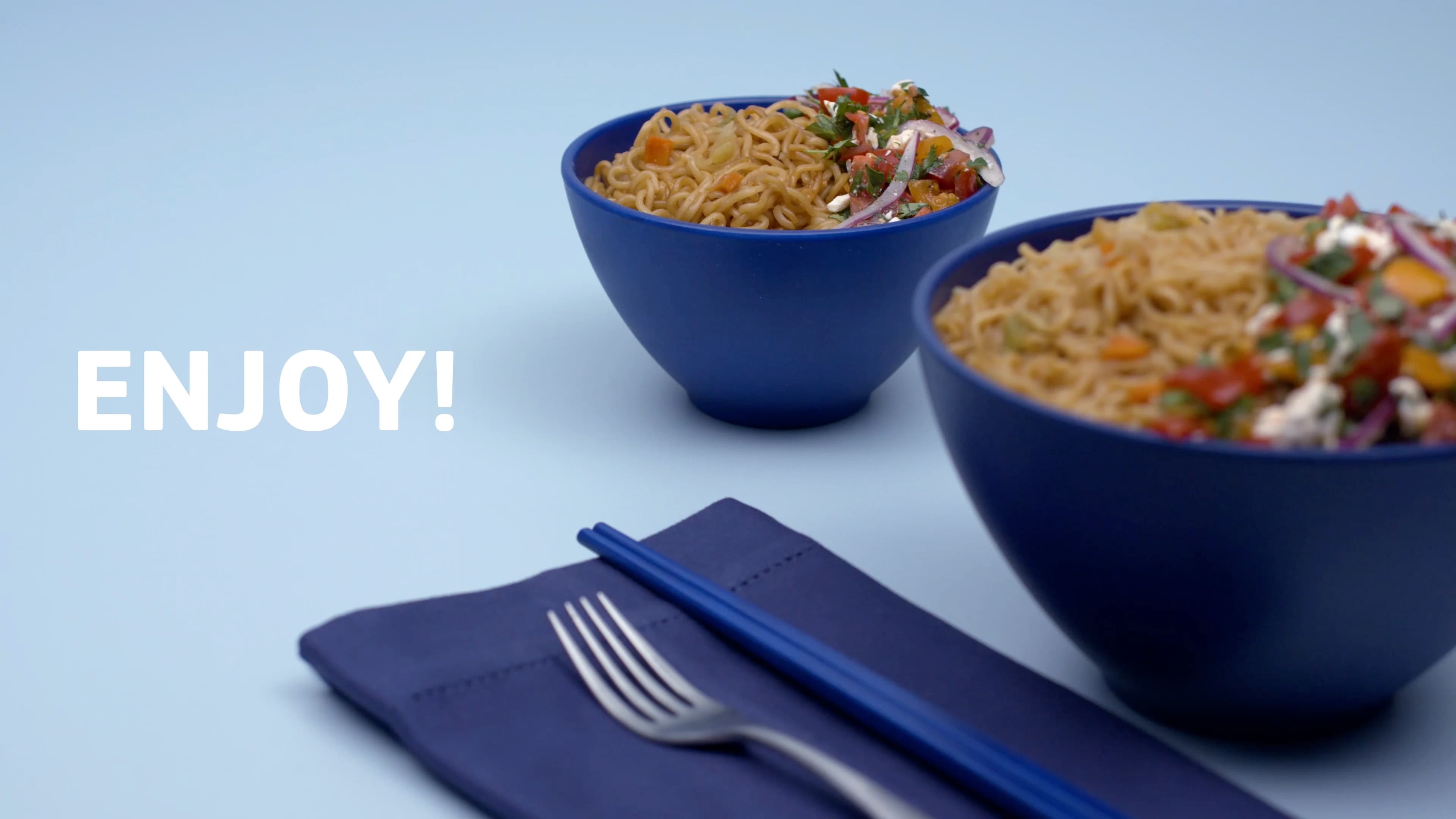 Transfer the noodles into four serving bowls. Top with the summer salad. Enjoy!