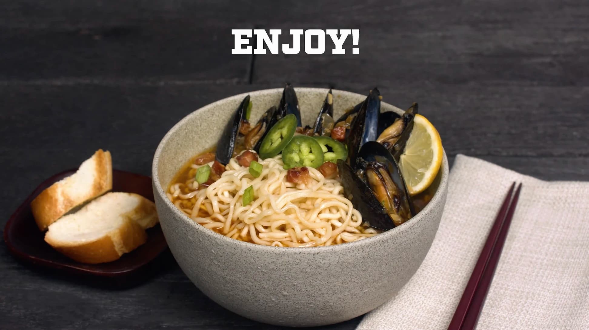 Savory, salty pancetta mixes beautifully with delicious mussels, green onions and lemon. Enjoy a flavor-packed seafood ramen with Maruchan GOLD Spicy Miso Flavor Ramen.
