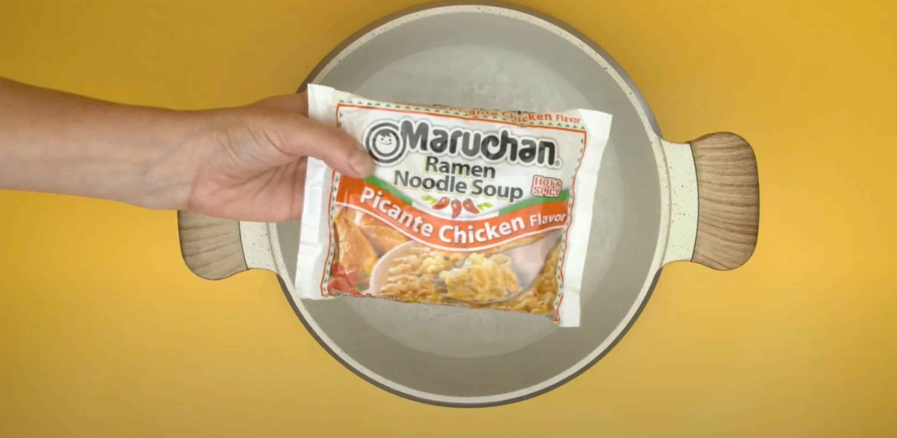 Cook Maruchan Ramen Picante Chicken Flavor Ramen in 4 cups boiling water for 3 minutes, stirring occasionally, then turn off the heat. Add the contents of the seasoning packet and stir well for 1 minute until seasoning is fully dissolved.