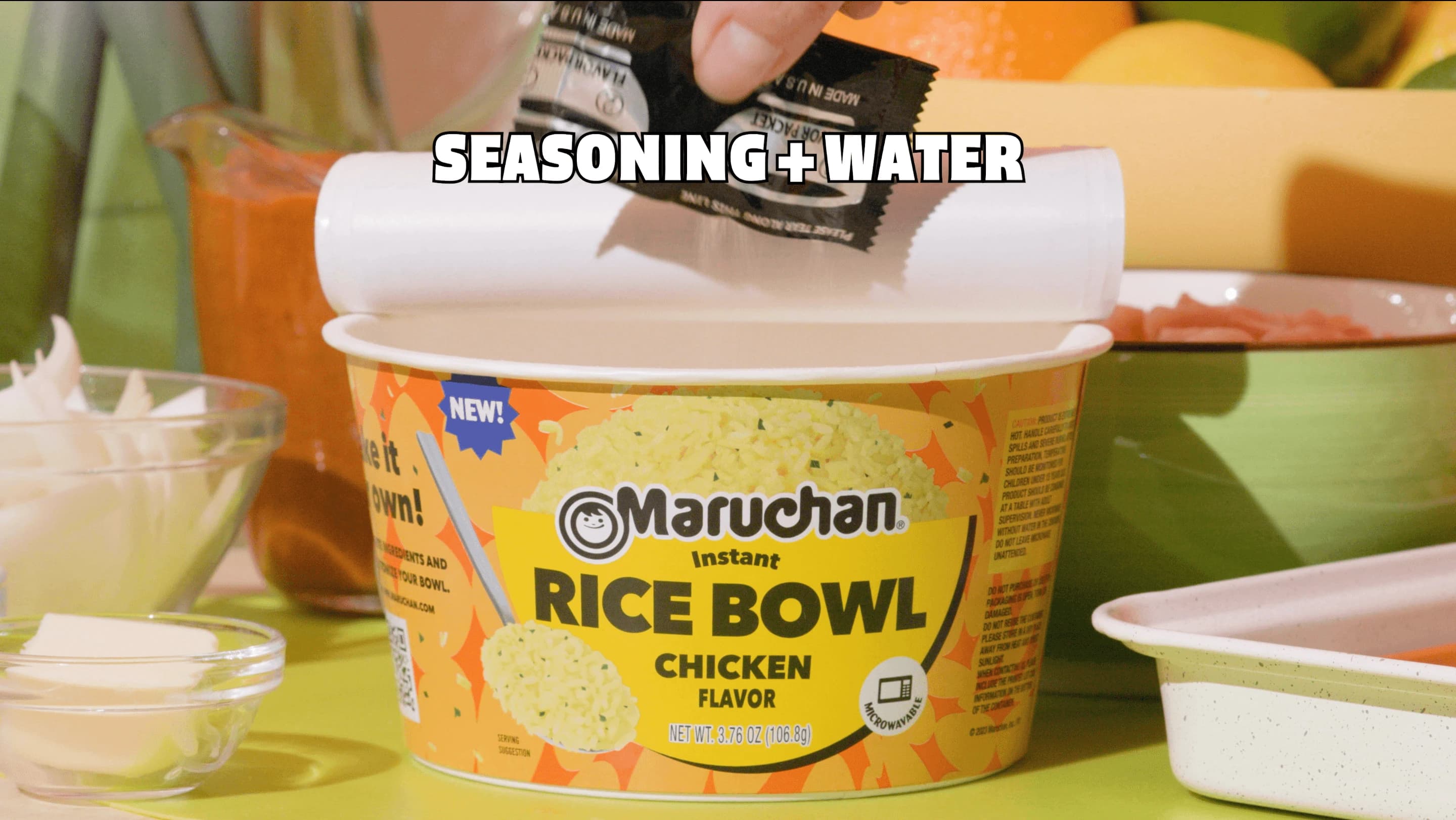 Savor the taste of India using a Maruchan Chicken Flavor Rice Bowl. Seasoned with fresh cilantro and topped with succulent chicken thighs and onions simmered in a butter chicken sauce. Garnished with cilantro and served with grilled mini naan bread.