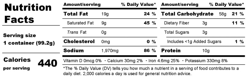 Big, filling ramen in an OG flavor with the spice level turned up to an 11. Includes veggies, chili and other spices — all in a microwavable bowl.