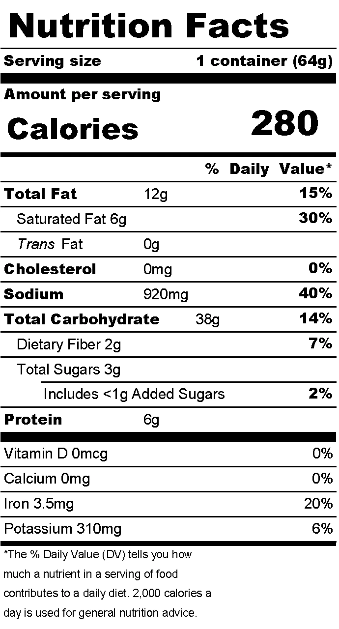 INGREDIENTS: ENRICHED WHEAT FLOUR (WHEAT FLOUR, NIACIN, REDUCED IRON, THIAMINE MONONITRATE, RIBOFLAVIN, FOLIC ACID), VEGETABLE OIL (CONTAINS ONE OR MORE OF THE FOLLOWING: CANOLA, COTTONSEED, PALM) PRESERVED BY TBHQ, SALT, DEHYDRATED VEGETABLES (CORN, CARROT, ONION, GARLIC, CHIVE), MALTODEXTRIN, CONTAINS LESS THAN 2% OF: SUGAR, MONOSODIUM GLUTAMATE, CHILI, HABANERO, PAPRIKA, AND OTHER SPICES (CELERY SEED), DEHYDRATED SOY SAUCE (WHEAT, SOYBEANS, SAM, CHICKEN FAT, POWDERED COOKED CHICKEN, CITRIC ACID, POTASSIUM CARBONATE, SODIUM CARBONATE, NATURAL FLAVOR, HYDROLYZED CORN PROTEIN, HYDROLYZED WHEAT PROTEIN, HYDROLYZED SOY PROTEIN, TURMERIC, SODIUM HEXAMETAPHOSPHATE, SILICON DIOXIDE (ANTI-CAKING AGENT), SODIUM TRIPOLYPHOSPHATE, YEAST EXTRACT, MONOSODIUM PHOSPHATE, DISODIUM GUANYLATE, DISODIUM INOSINATE, LACTOSE.